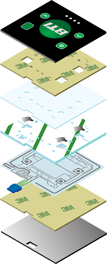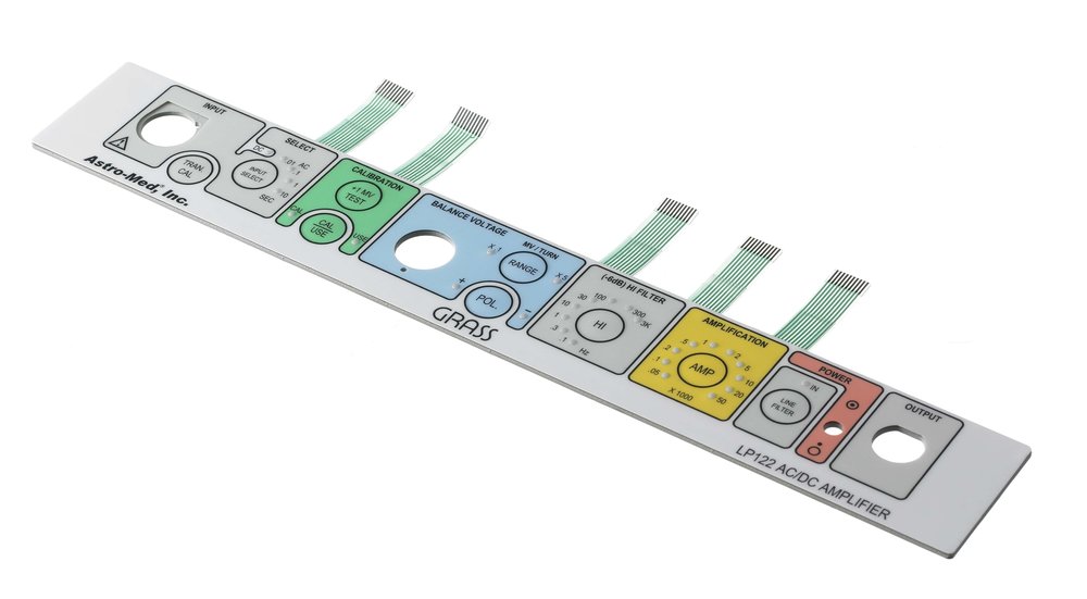A membrane switch operates when electrical contact is made by pressing the finger onto the switch contact area and broken when the finger is released. With the addition of metal domes within the structure, it is possible to add a specific tactile response for each key.