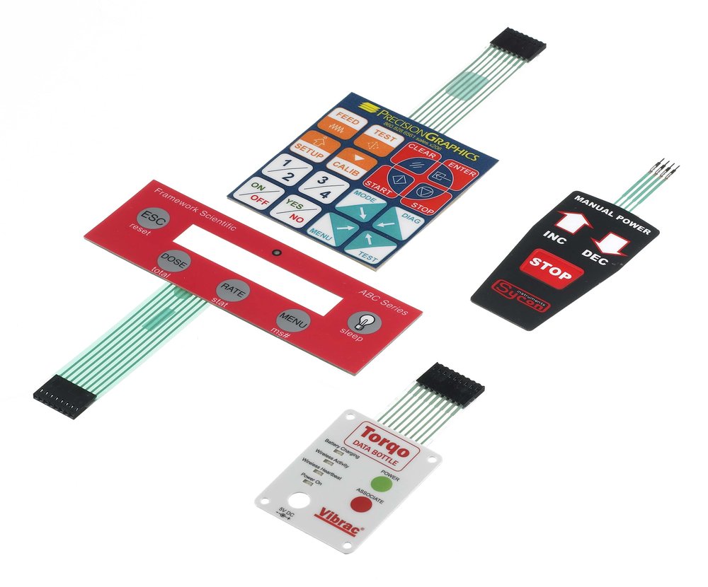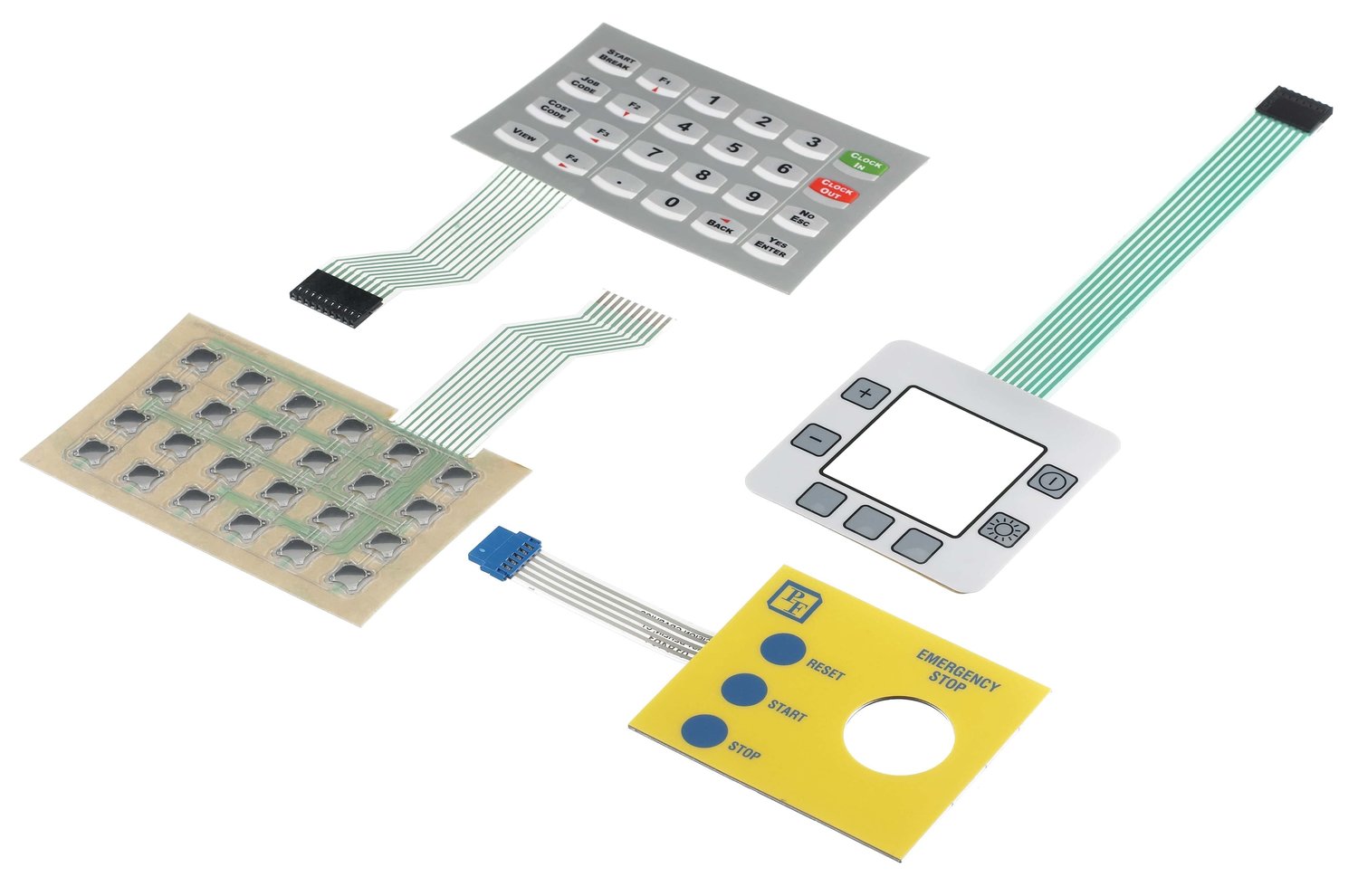 Membrane switches, which are also referred to as Membrane Keyboards or Membrane keypads, are made by printing colored and conductive inks onto Polyester or Polycarbonate films. The top layer creates the graphical design whilst the lower layers contain the printed circuitry layers.